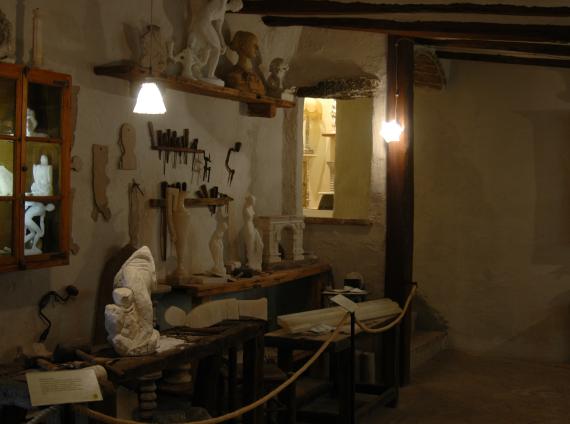 Salle 1 – Restauration, reproduction du premier atelier d'albâtre de 1917.